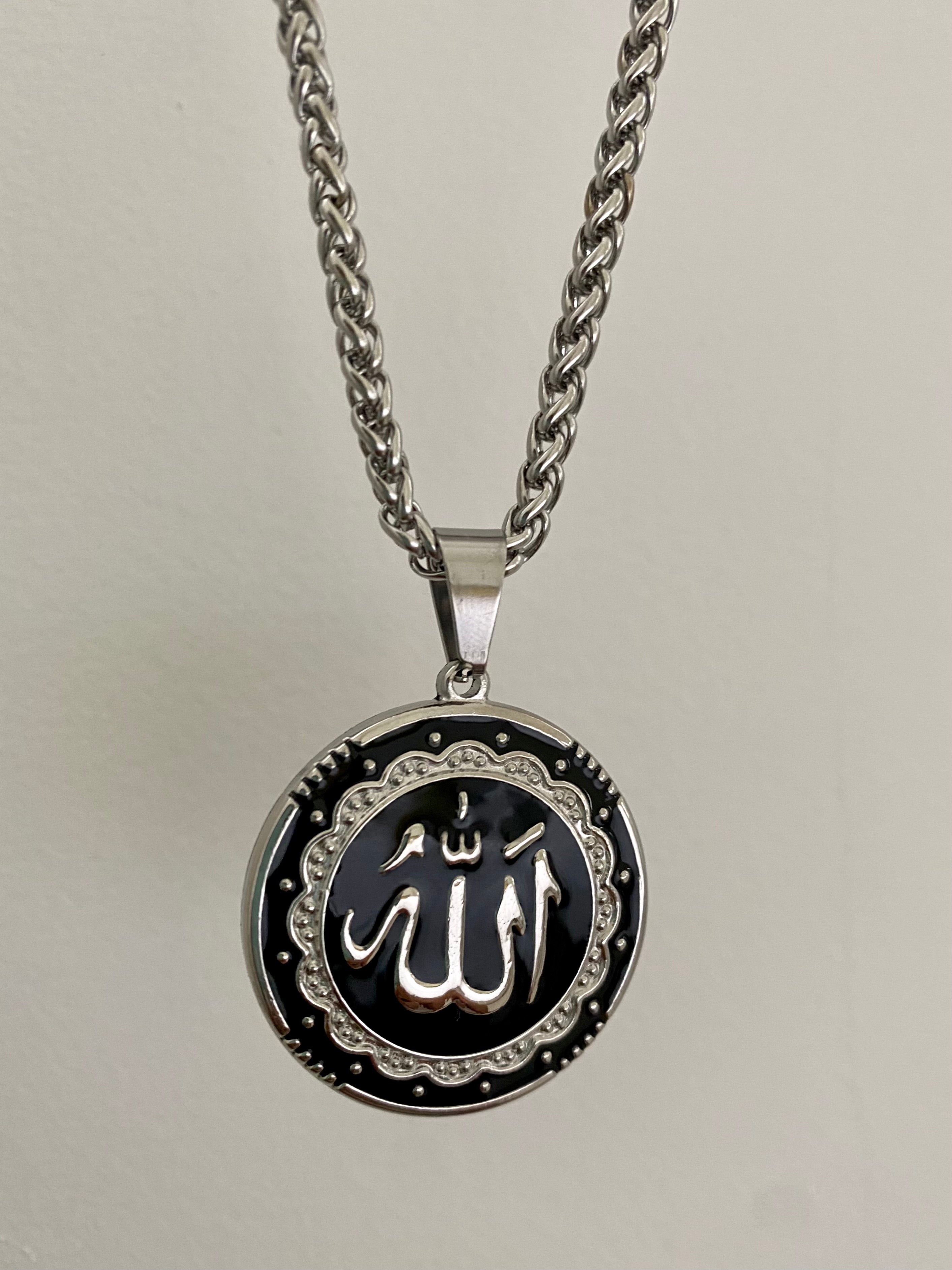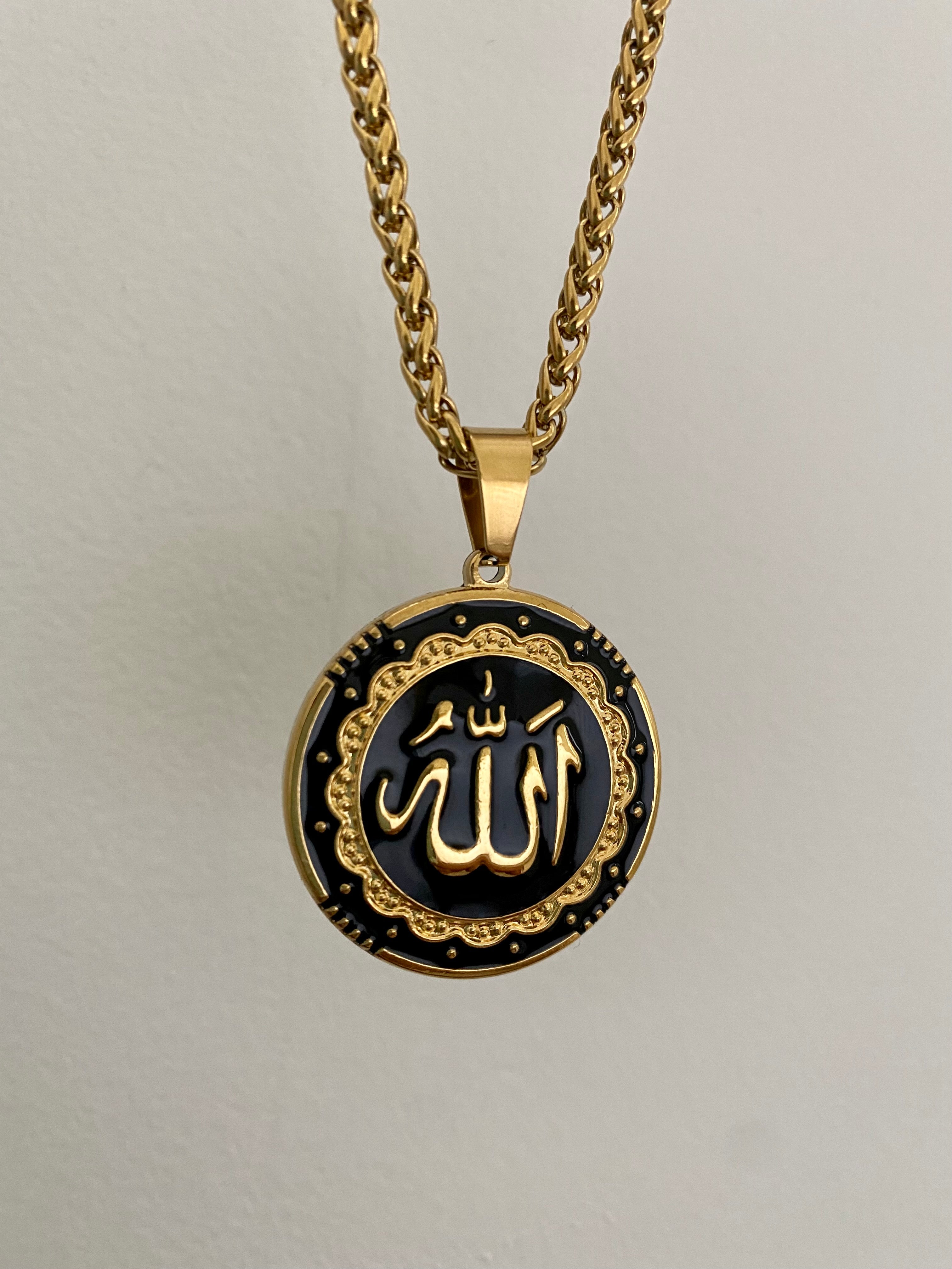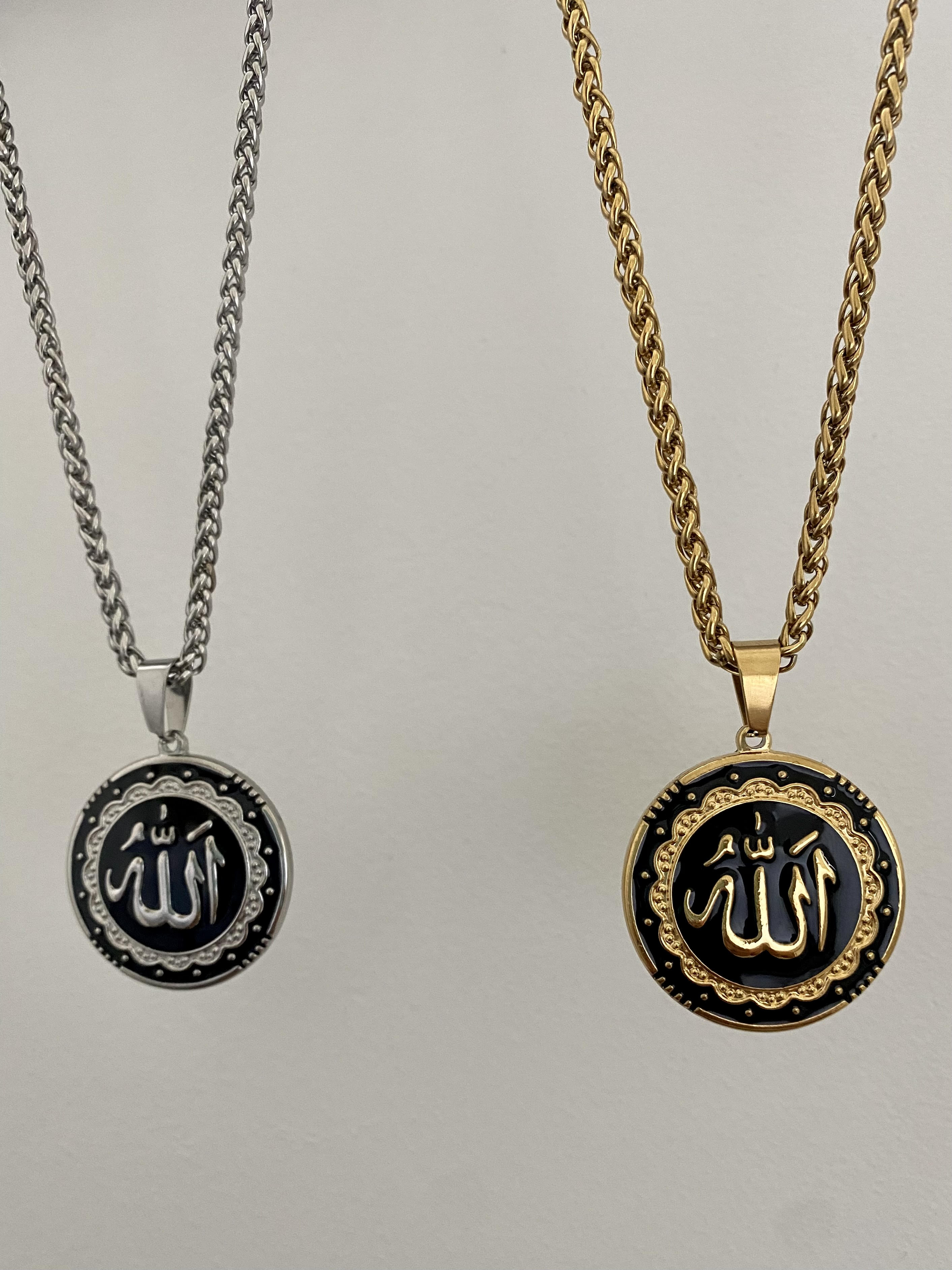 Stainless steel pendant with the name of Allah Swt. It has black detailing and comes in a silver and gold colour. The pendant comes with a 60 cm (approximately 24 inches) chain however, it can also be removed and used as a key-ring etc. Pendant dimension (in cm): Width - 3 Height - 3.