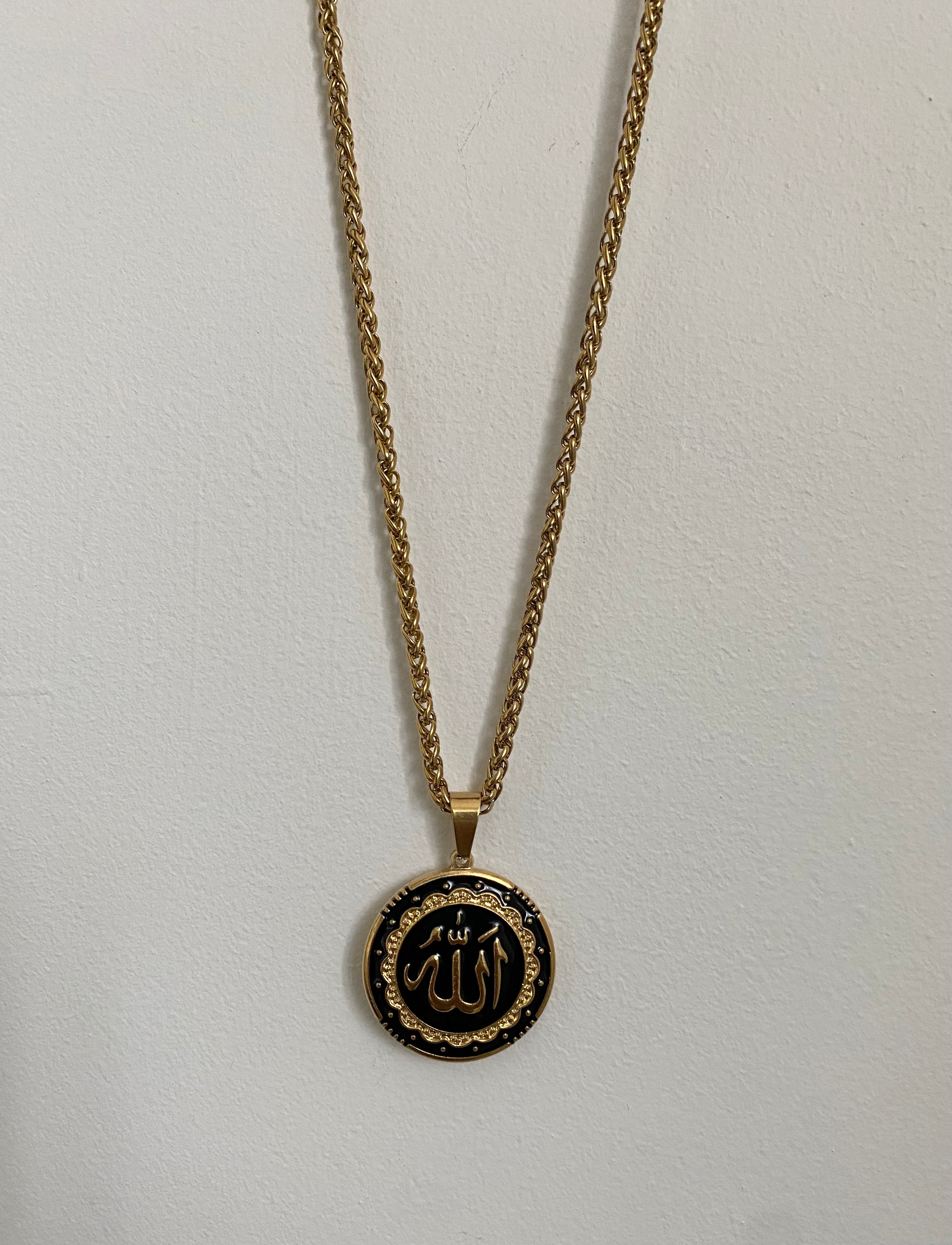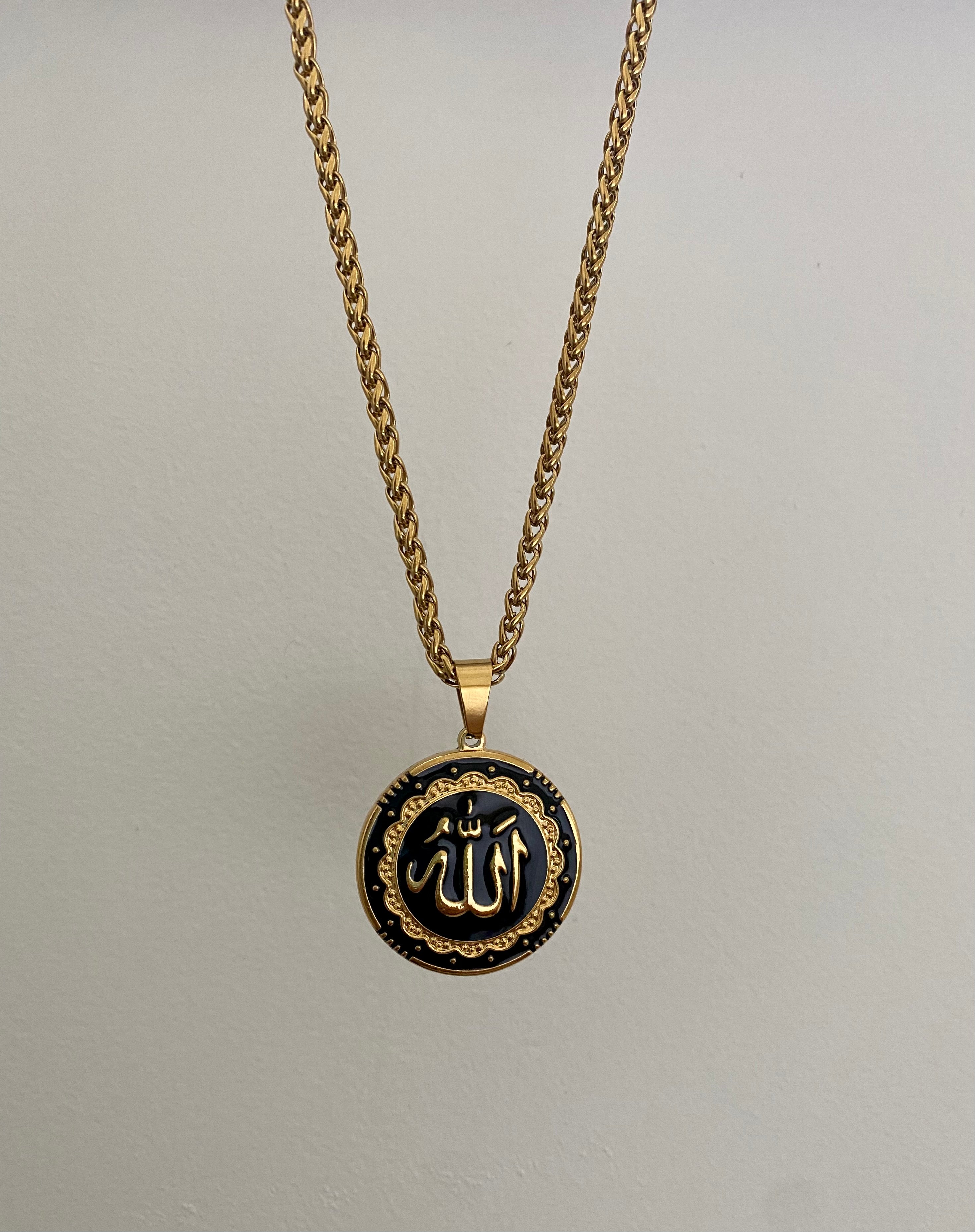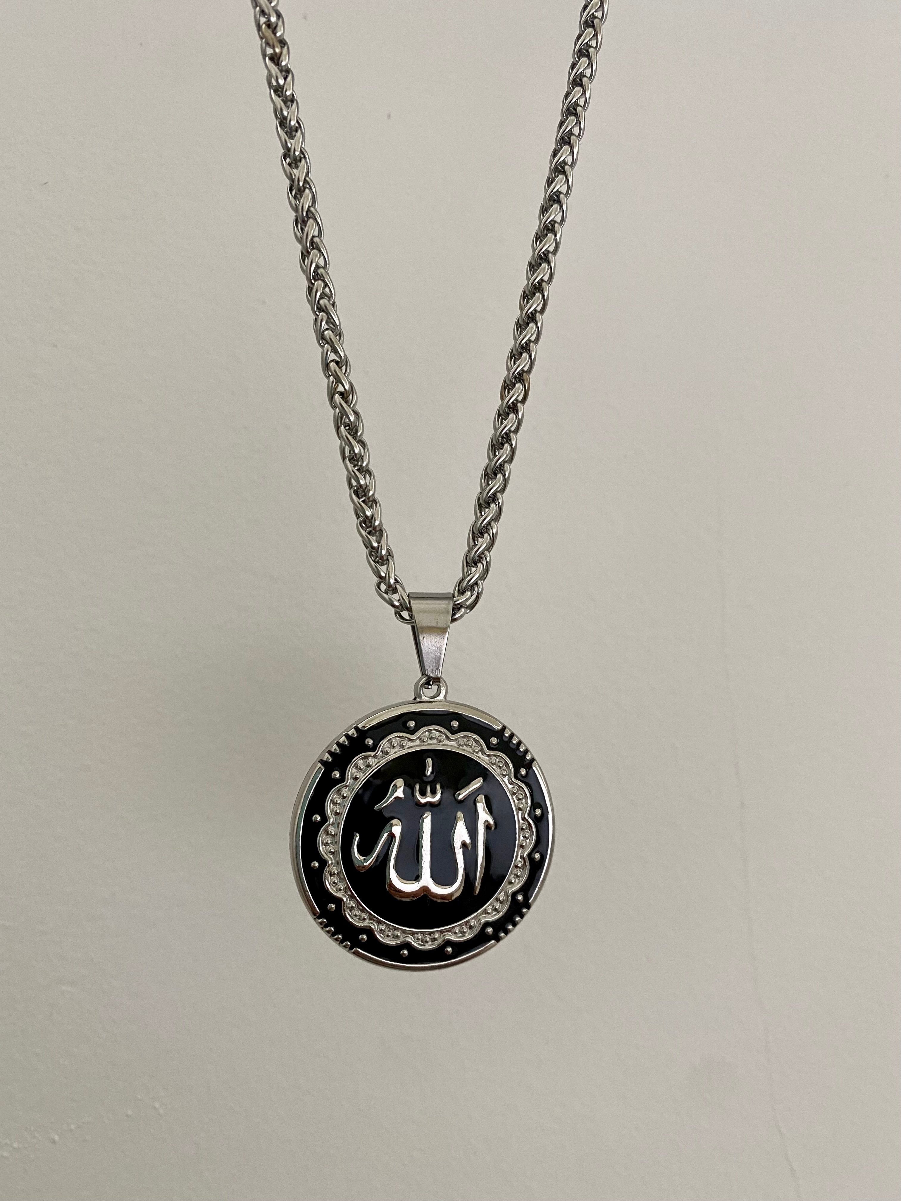Stainless steel pendant with the name of Allah Swt. It has black detailing and comes in a silver and gold colour. The pendant comes with a 60 cm (approximately 24 inches) chain however, it can also be removed and used as a key-ring etc. Pendant dimension (in cm): Width - 3 Height - 3.